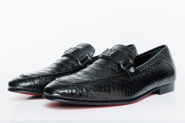 Vinci Leather Best Sellers | Men The Boss Pyth Black Shoe Bit Loafer Shoe