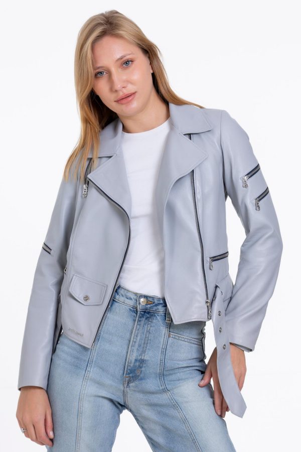 Vinci Leather Best Sellers | Women The Rodos Leather Gray Jacket